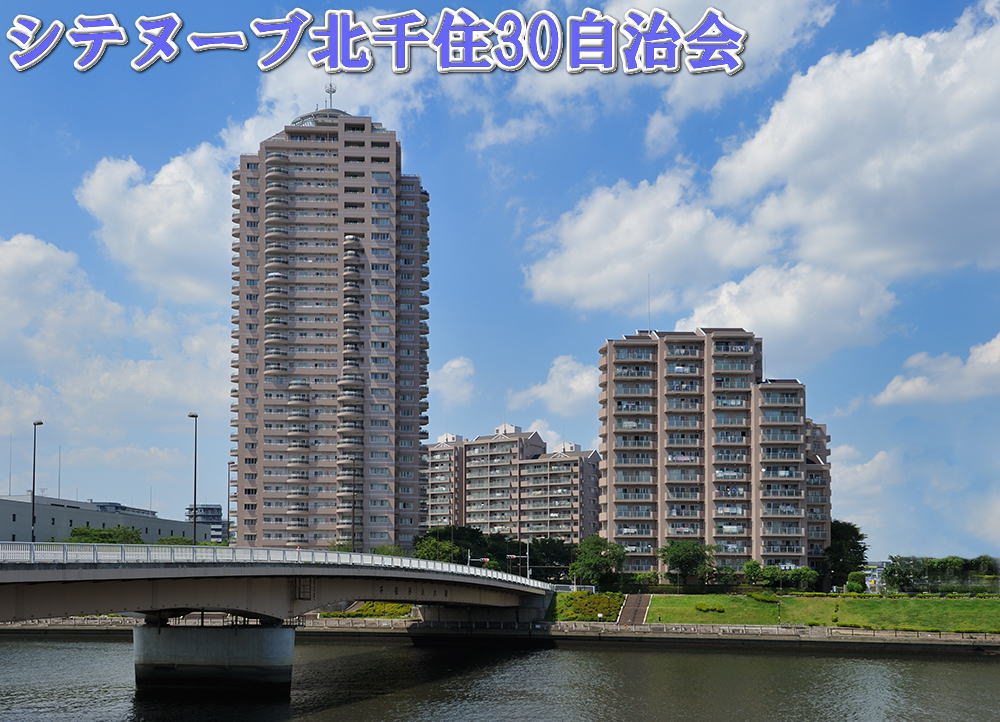 「シテヌーブ北千住30」は、隅田川沿いに建ち,荒川の高速道路からもひときわ高く見える 30階建てを含む、 3つの 建物からなる総戸数408戸のマンションです。 1993年自治会設立当初から住みやすく信頼できるコミュニティを形成することを目指し、様々なイべントなどを通じて、人の”輪” “和”を培っております。